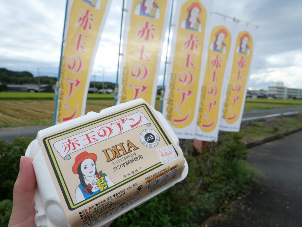 赤玉のアン の旗が印象的な養鶏場です🐓✨