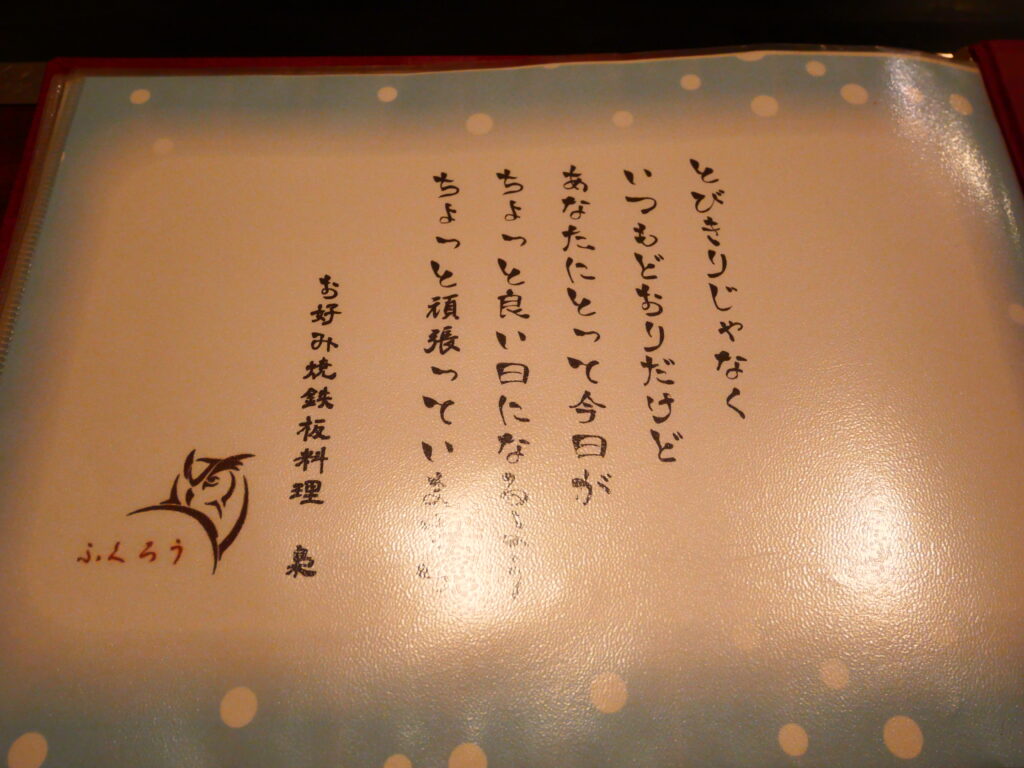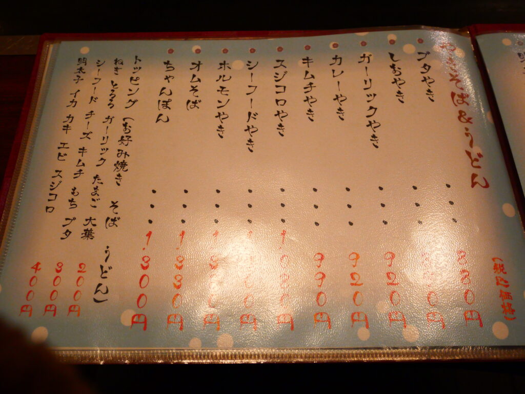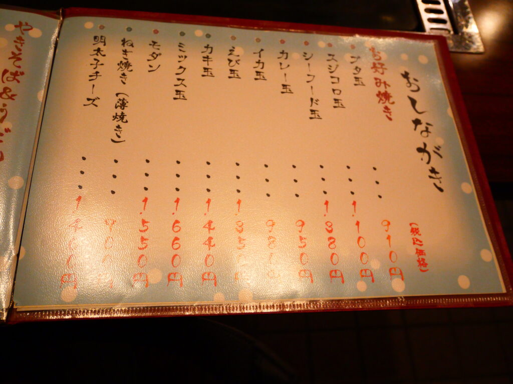 豊富なお好み焼きメニューを眺めておりましたら…