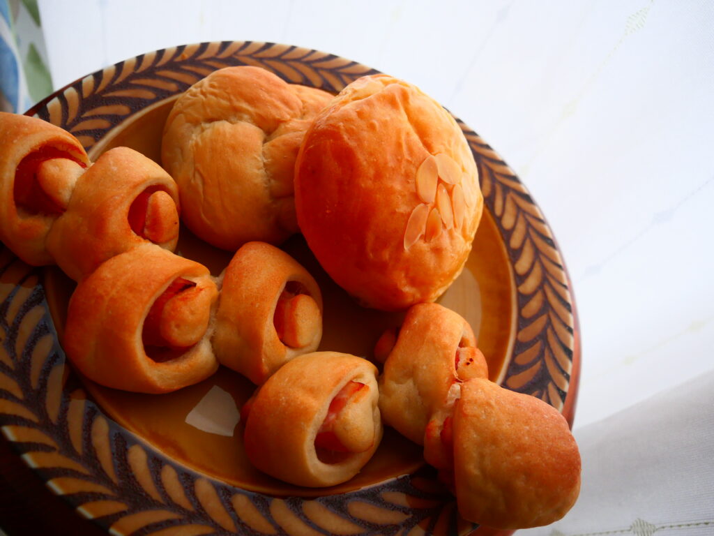 形が特徴的なパンで、少しずつちぎって食べられたので